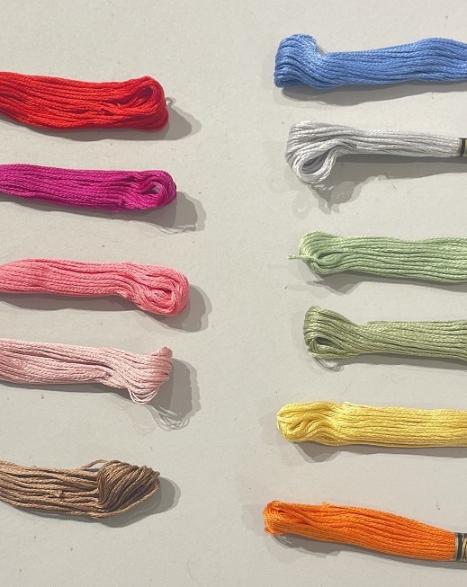 ワークショップでは糸の色も複数ご用意していますのでお気に入りのカラーで作品を仕上げていただくことができます。