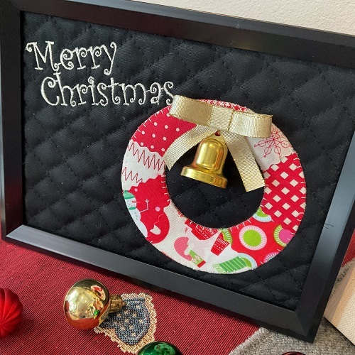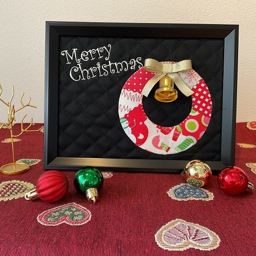 「クリスマスリース」は、ミシン刺しゅうで施した文字刺しゅうもポイント。
