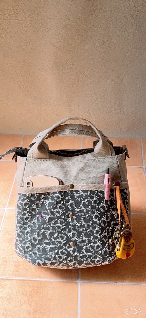 10号荻野帆布、ちょうちょ柄刺しゅう生地