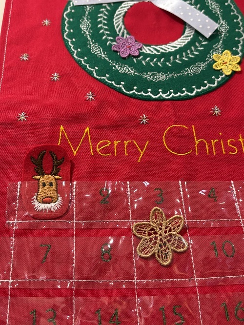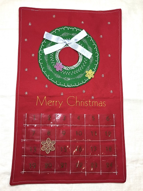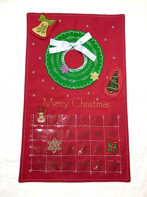 日付のポケットにはレース刺しゅうや小さなお菓子などを入れて、毎日装飾していくのも楽しいですね。