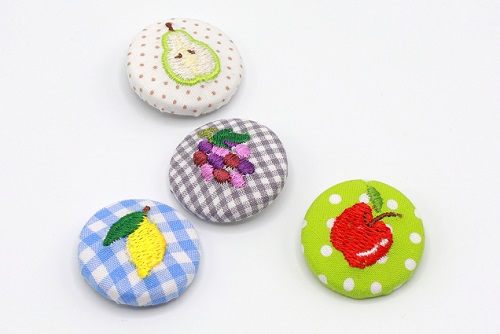 できあがった刺しゅうはくるみボタンに仕上げます。