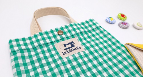 オープニング記念にボビナージュのロゴ入りの刺しゅうタグをご用意しました。