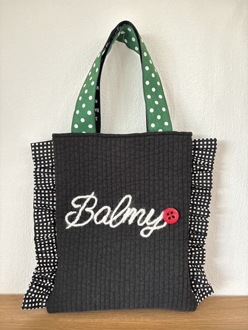 両脇のフリルと水玉の持ち手でPOPなバッグに仕上がりました。