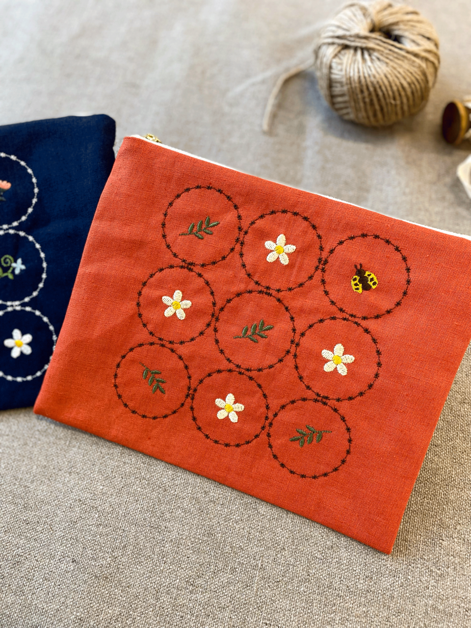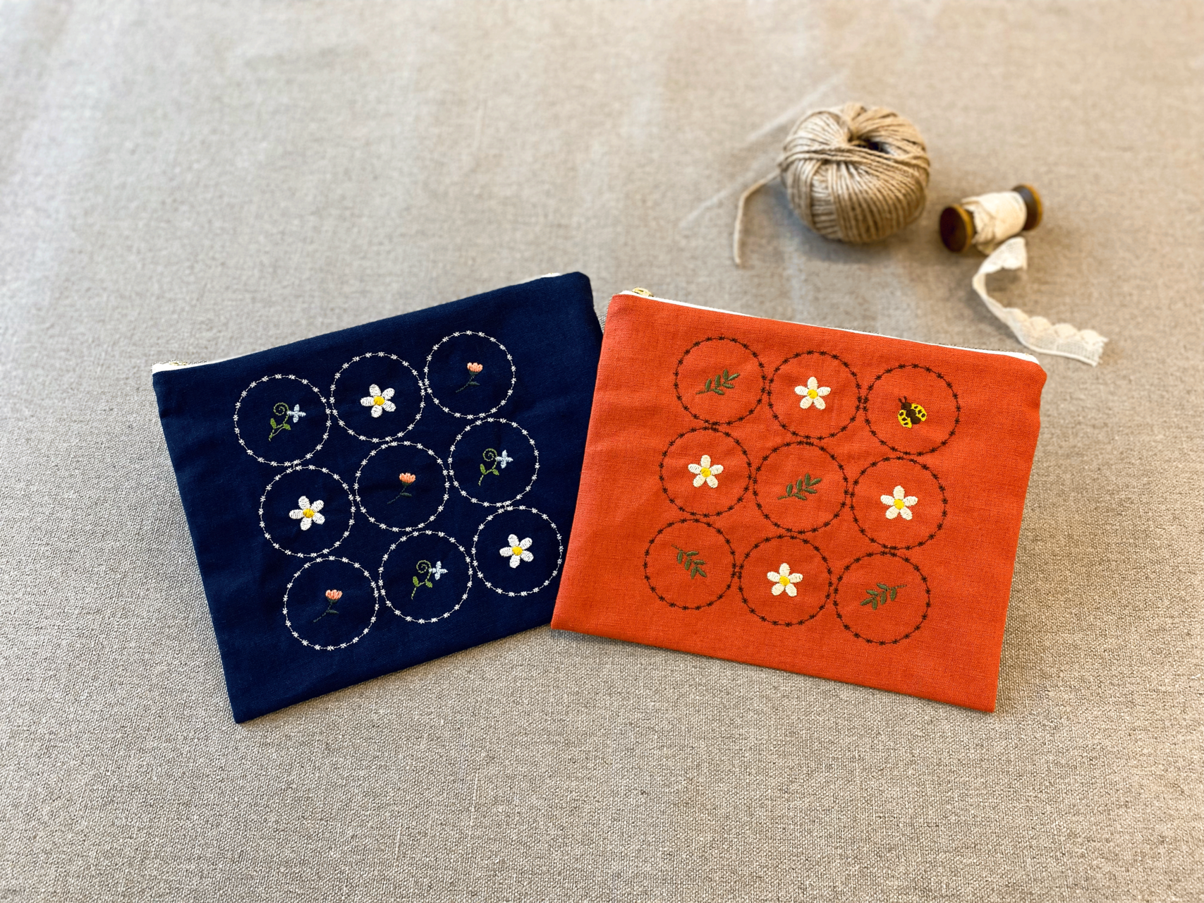 フローラル刺しゅうのファスナーポーチ