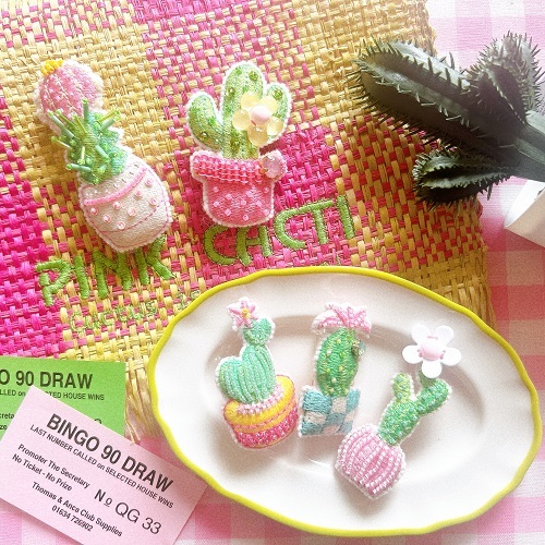 カラフルなサボテン刺しゅうアクセサリー