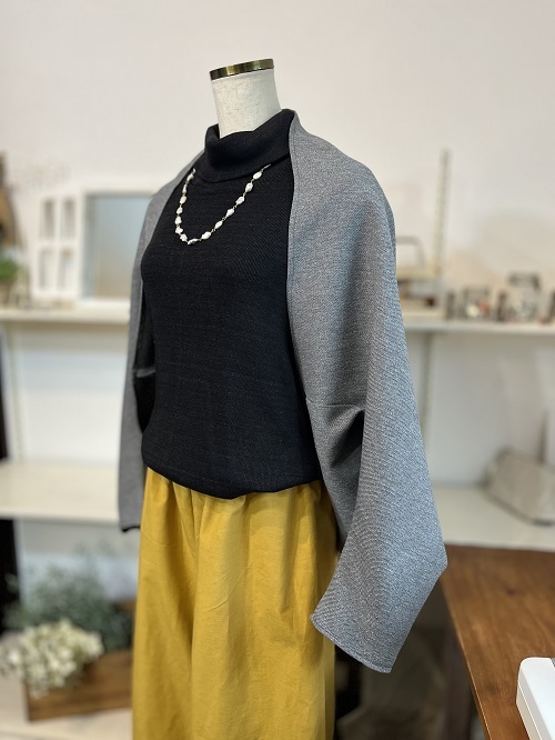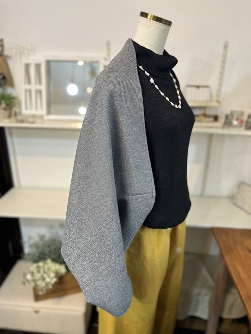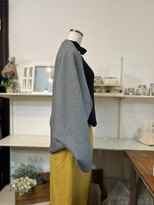 袖を通せるので脱げにくく、肌寒い日の羽織りものに重宝します。