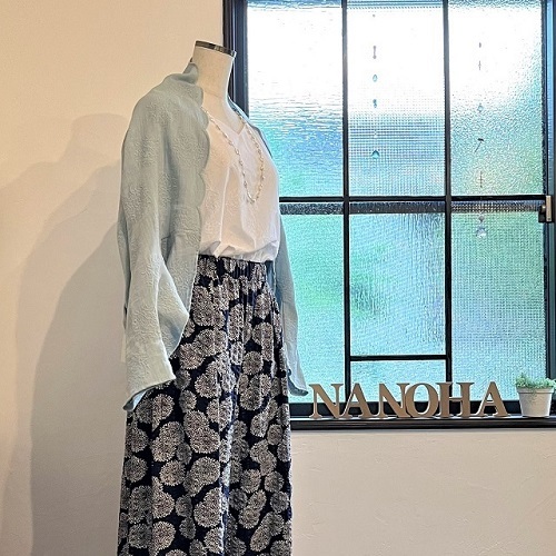 デザイン性のある生地を使うととっても華やかに! ※この生地はボビナージュでの購入はできません。