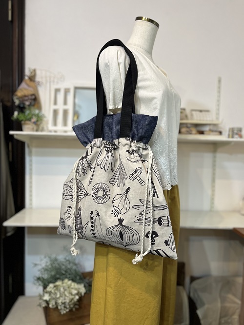 絞らずフラットにすると、たっぷり入るサブバッグとして活躍します♪