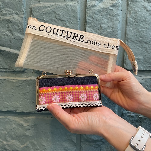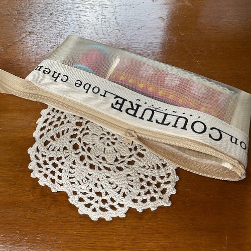 ぺたんこポーチはしっかりしたチュール仕立てで、ファスナーを少し長めにして使い勝手を良くしています。