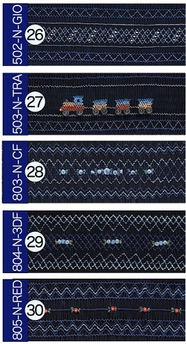 スモッキング刺繍専門店としては、国内でスモッキング刺繍のデザインバリエーションが一番多く、ハンドメイド用に完成した刺繍パーツは圧巻です。