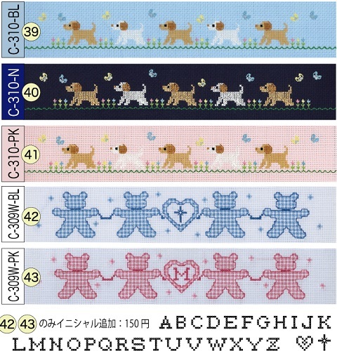 ※クロスステッチ刺繍㊲と㊳でイニシャル追加をご希望の場合は、追加料金150円を申し受けます。