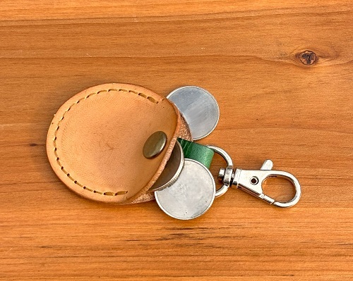 ベルトループにつけたり、バッグのストラップとして使えるコインケースキーホルダーを作ります。