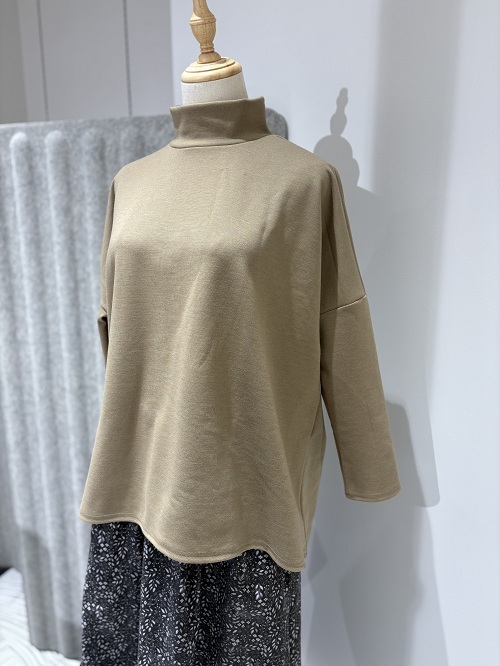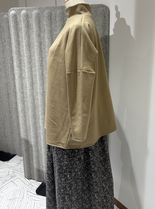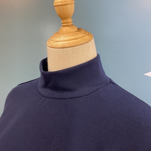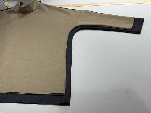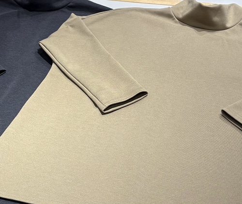 ロックミシンとカバーステッチミシンを使って作る、首元が暖かいハイネックのカットソー。