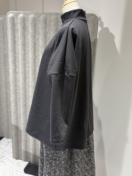 身頃にゆとりを持たせたワイドトップで、袖はドロップショルダースタイルです。