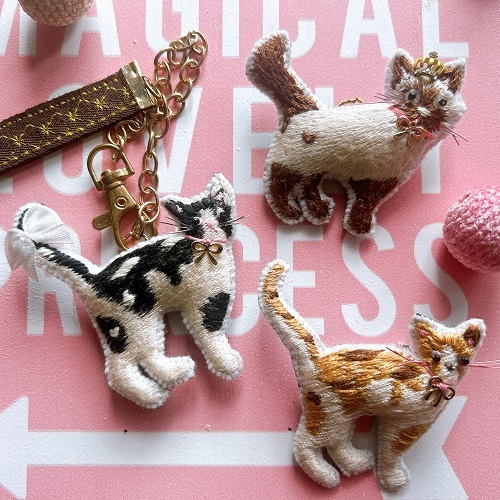 お問い合わせの多かった、猫ちゃん達の刺しゅうが可愛くデコレーションして登場!
