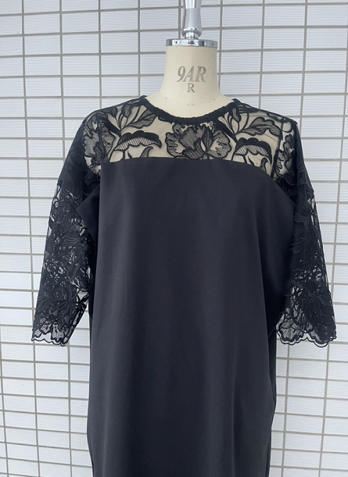 本体のジャージ素材と意匠性の高い刺繍素材のレースは一般では手に入りづらい