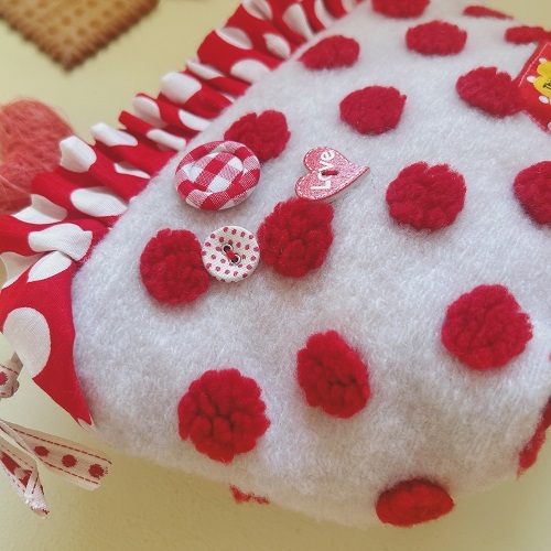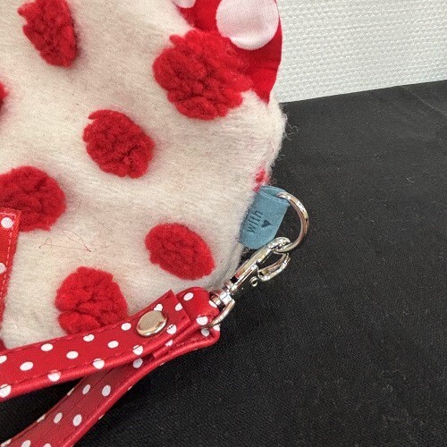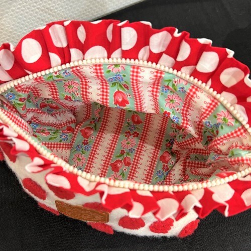赤いモコモコとフリルが可愛い大きめのポーチを作ります。