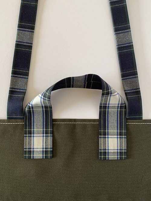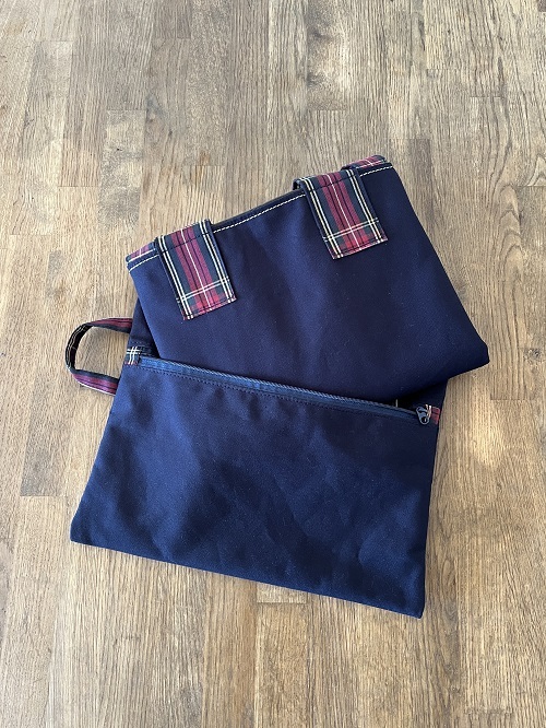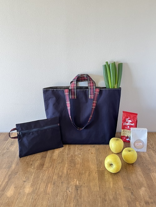 新刊『赤峰清香 一年中使いたい手作りバッグ図鑑』(ブティック社)から「リバーシブルエコバッグとポーチ」をアレンジしたエコバッグとポーチを作成します。