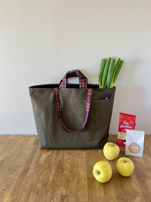 マチがたっぷりある大容量のバッグはリバーシブル仕様!