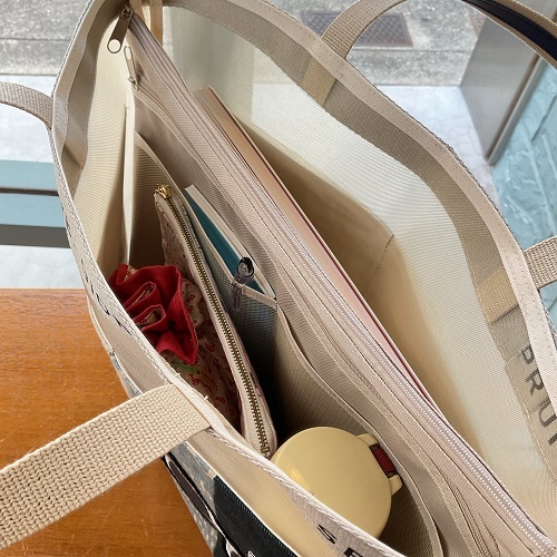 中が見えにくいように、また、バッグの中の仕切りとしてもお使いいただけます。