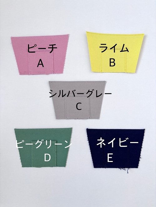 A.ピーチ B.ライム C.シルバーグレー D.ピーグリーン E.ネイビー