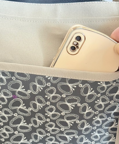 荻野帆布10号(グレージュ)、ちょうちょ柄刺しゅう生地