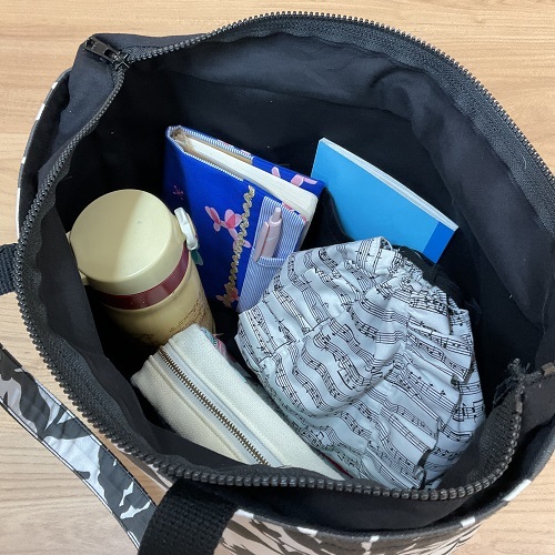 袋口はファスナー仕立てなので、バッグの中身が飛び出たり、外から見える心配もありません。