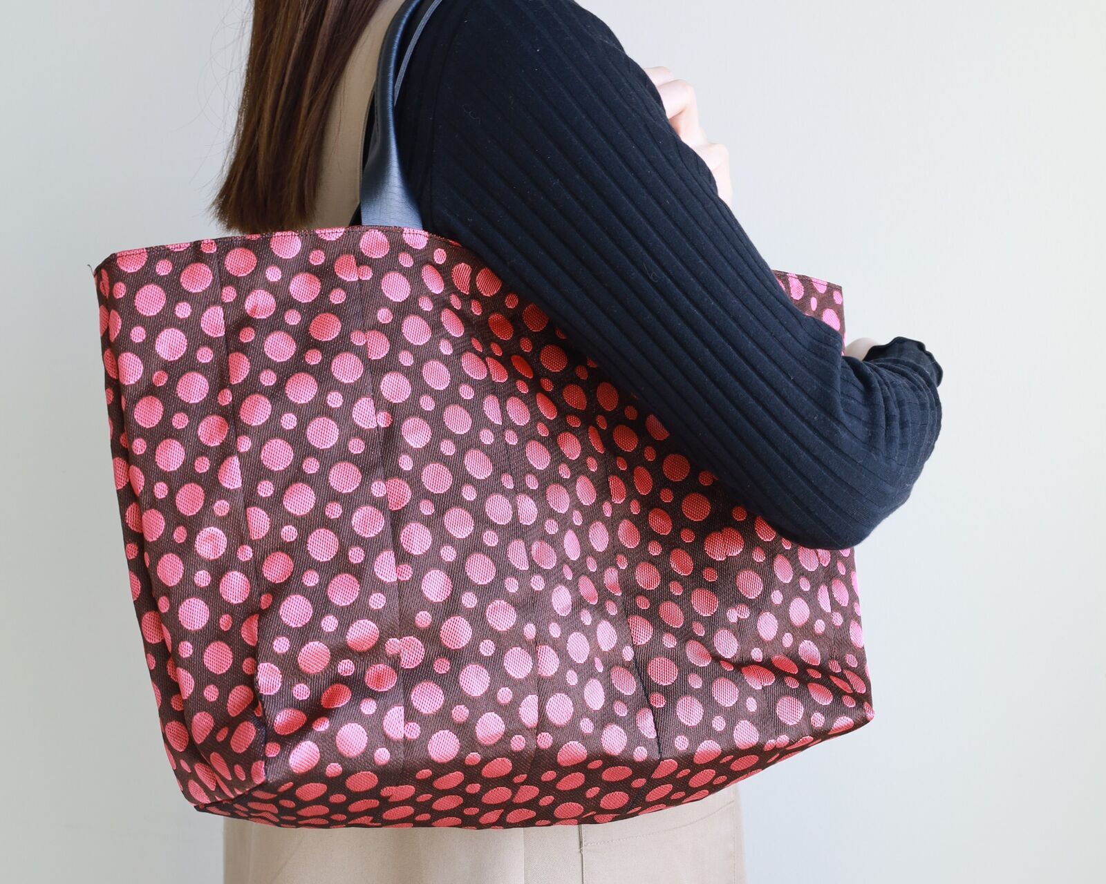 持ち手は肩にかけられる長さです。
