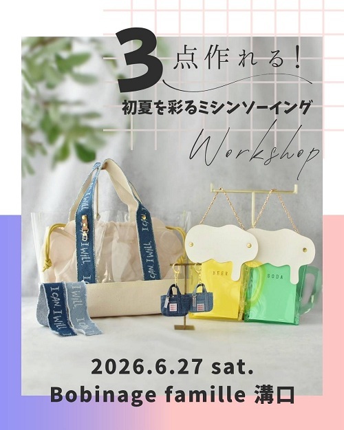 大人気の作家3名によるワークショップを、ボビナージュファミーユ溝口にて開催いたします!
