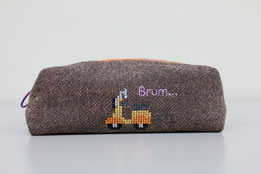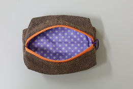 ミシン刺しゅうがかわいい使いやすいサイズの裏布つきのファスナーポーチです。
