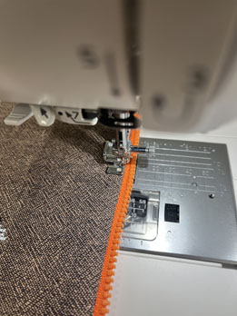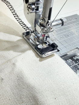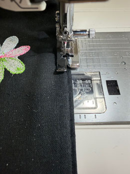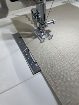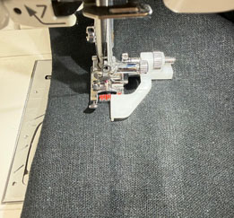 布端から均等な距離で縫える「端ミシン押さえ」の使い方を学びます。