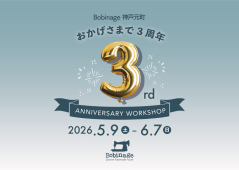 Bobinage 神戸元町 NEWS 2026 03 27 ワークショップ 【3周年アニバーサリー】「《Wanconer》ワンコナーという名の犬のサコッシュ」高田とよか先生 2026 03 27 イベント Bobinage 神戸元町3周年アニバーサリーのお知らせ 2026 03 26 ワークショップ フローラル刺しゅうのファスナーポーチ 2026 03 25 ワークショップ 「CHECK&STRIPE」のラミネート生地で作る ショルダーバッグ 2026 03 25 ワークショップ ロックミシンで作る ローブドカーディガン 2026 03 24 ワークショップ フード刺しゅうのトートバッグ(神戸元町) 店舗情報 所在地 〒650-0011神戸市中央区下山手通3-3-5トアウエストコンチェルティーノ1F TEL 078-333-2532 営業時間 10:30〜19:30 定休日 月曜日(祝日の場合は営業) 最寄駅 阪神「元町」駅、JR「元町」駅 徒歩3分阪急「三宮」駅、JR「三ノ宮」駅 徒歩9分 MAP 提供サービス