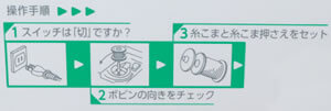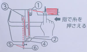 糸のかけ方や、操作の手順がひと目でわかるイラスト表示