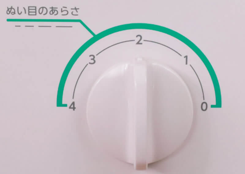 ぬい目のあらさを設定する送り調節ダイヤルは、0~4mm の間で調節できます。