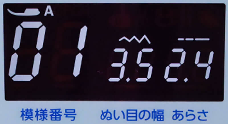 選んでいるステッチや押さえのほか、設定も表示されます。