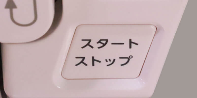 指で押すだけのボタン式で、スタートストップはワンタッチ。はじめは低速でぬい始めゆっくりスタート機能付き。