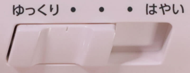 ぬいのスピード調節は指先でスライドレバーを動かすだけ。