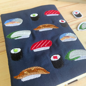 刺しゅうのひきだしにて配信中「おすしコレクション2」を使った作品です。