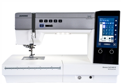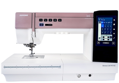 The HORIZON Memory Craft 9410QC has 280mm (11") wide work area. The 5" High-Def color screen makes it easy to navigate through the 300 built-in stitches.
