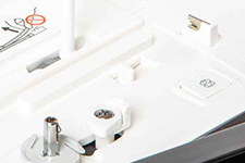 The top cover opens easily with the push of one button, revealing carefully thought-out storage and threading options. Three strong magnets across the top allow you to keep all of your tools handy and clean at all times. Store your favorite sewing feet in the designated cubbies. The thread path is clearly marked and indicated to avoid errors in threading.