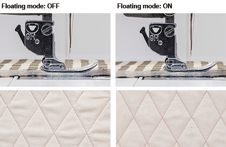While in floating mode, the CONTINENTAL M17 will not extend full pressure to the presser foot while feeding fabric. This will protect delicate or high pile fabrics like velvet.