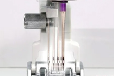 Using the newest embroidery foot from Janome, the LED pointer aligning feature can show the position of your needle on the fabric below. This feature lets you see exactly where your needle will strike before stitching begins for extreme precision. Perfect for designs that need to be placed in precisely the correct position. Use the LED pointer with the baste function to ensure your design is exactly where you want it to be.