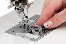 Never run out of full bobbins! With an independent bobbin motor, there is no need to stop your sewing or embroidery. Set up your bobbin, push the Bobbin Winding button, and keep stitching while the machine simultaneously winds your bobbin. It’s the perfect sewing multi-tasker.