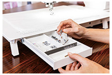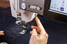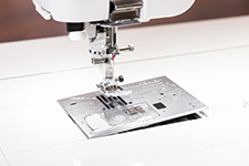 Using the right tools at the right time is essential in sewing. A straight stitch needle plate makes all the difference when using lightweight fabrics or piecing quilts. Our Computerized One Touch Plate Converter allows you to easily switch and use the perfect plate for your sewing project. Push the on-screen button to release the plate and place a new one in place. The CM8P comes with three standard needle plates: zigzag, straight stitch, and HP.