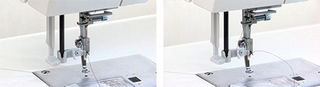 The needle threader stops once in the lowered position, making it easy to operate and allowing you to thread the needle quickly.