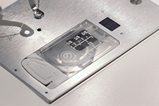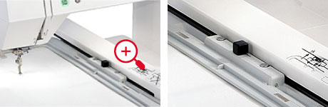 Sliding the lever allows the embroidery hoop to be attached and removed easily.