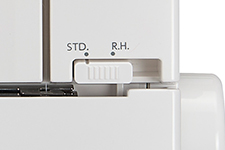 No need to adjust the thread tension for rolled hemming, simply slide pre-tension setting slider to “R.H.”.