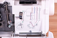 Color coded threading chart is located inside the front sliding cover, this makes changing thread easily!