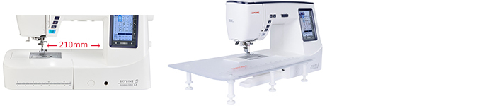 It has 210mm (8.2”) wide arm space to the right of the needle with a height of 120mm (4.7”), giving you plenty of space for those larger projects. The extra wide table is greatly increases your work area, providing plenty of spaces to easily manage larger projects.