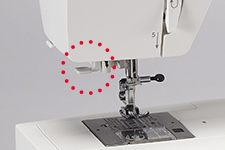 The needle area is illuminated by the LED lighting. Plus, the clear bobbin cover on the needle plate allows you to see the remaining bobbin thread.